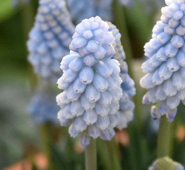 Delightfully scented, powder-blue flowers shading to white towards the top.