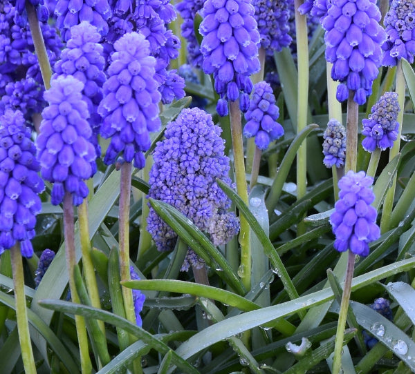 Grape Hyacinth. Cobalt blue double flowers. Excellent for naturalising and planting in grass.