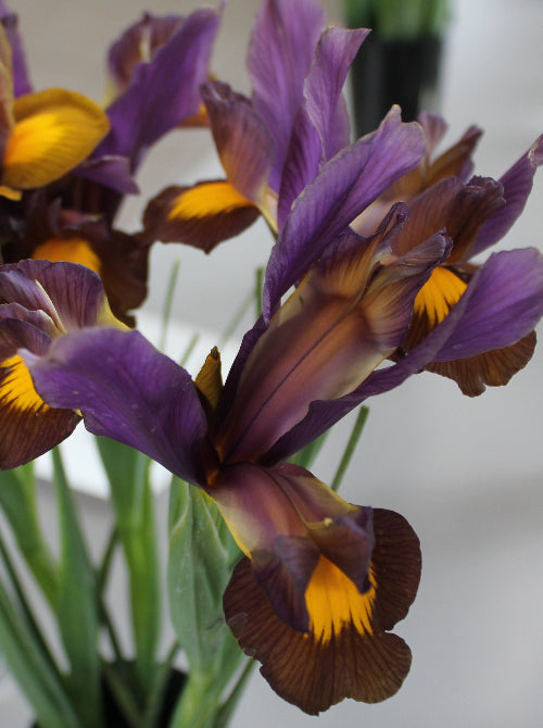 Bronze and purple flowers. Falls streaked brown, with a golden yellow centre.