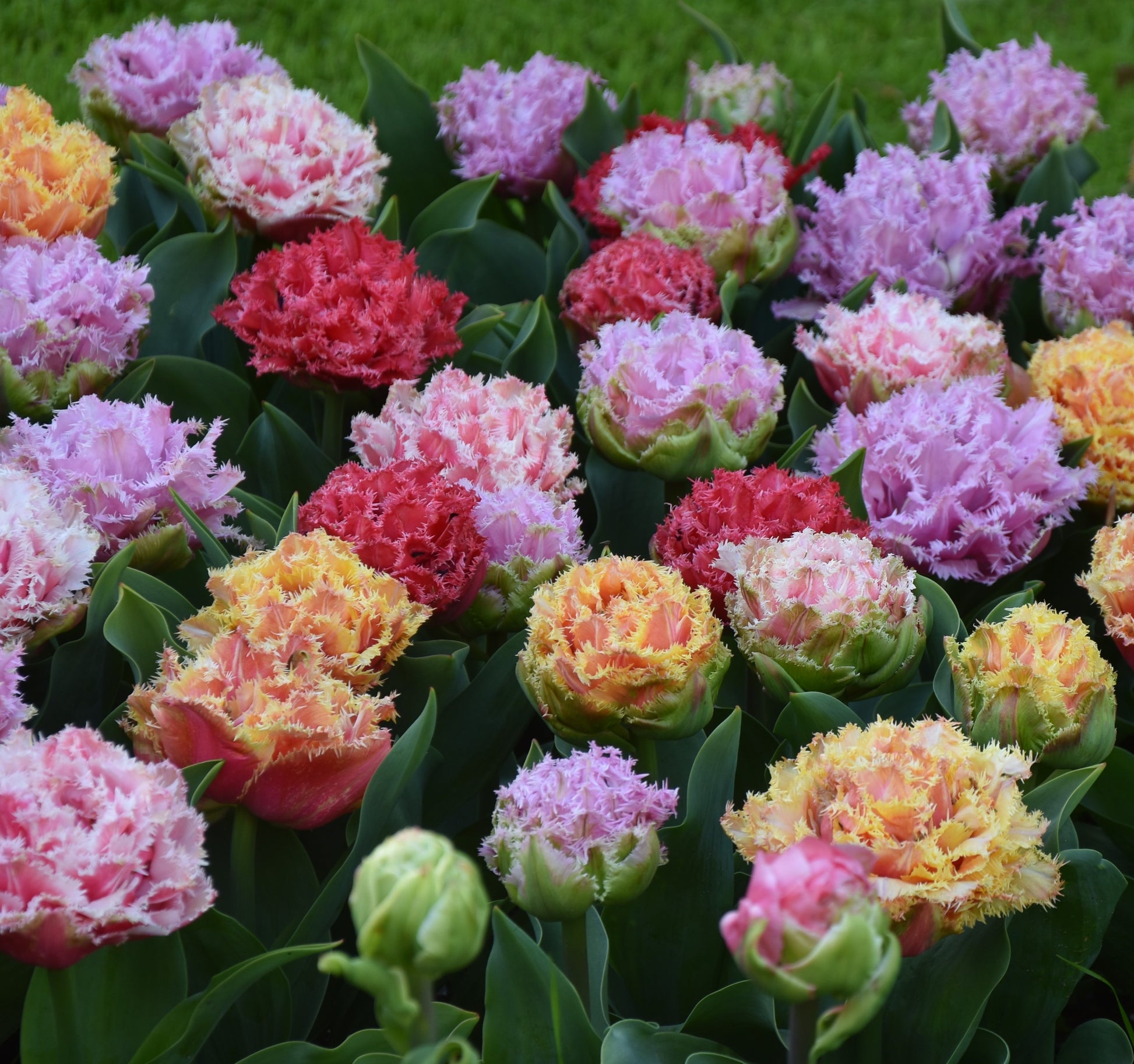 Enjoy the luxury of tulips with a twist—this collection combines double blooms with delicately fringed petals for an opulent spring display. Rich in colour, long-lasting, and perfect for borders or cut flowers.