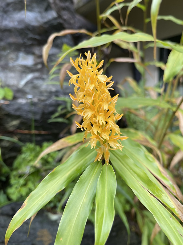 Dense racemes of deep yellow to orange flowers. These uncommon but useful plants can be treated like Cannas for summer bedding and in some areas are hardy. Plant in a rich soil, water and feed with a liquid manure copiously. If planted in pots or tubs, water several times daily. The foliage is attractive and many of the species are sweetly scented.