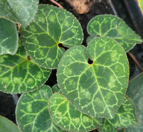 Attractive variably patterned foliage with white flowers. Sept-Nov. 5-10cm.