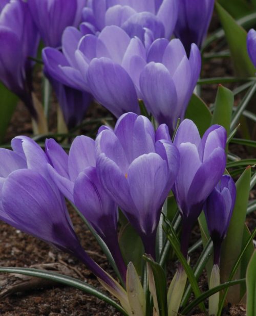 Sea lavender-violet with a silvery sheen, paler margins and orange anthers.
