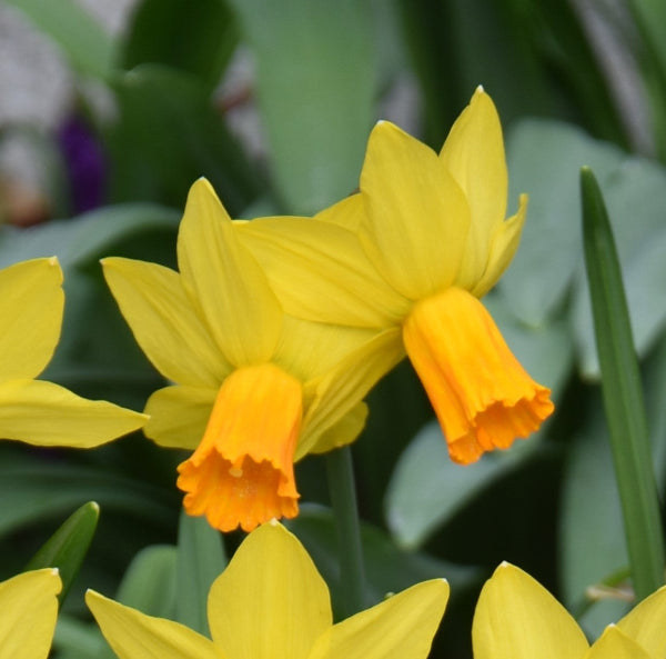 Well reflexed, large golden yellow flowers with a bright orange red trumpet.