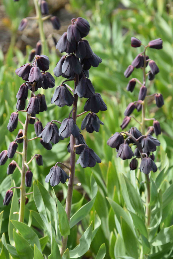 Deep purple, almost black flowers.