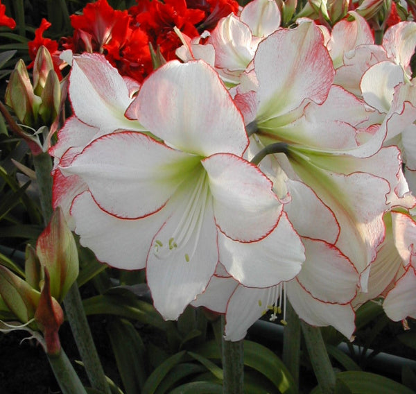 Picotee is white with a fine red edge. One of the finest Hippeastrums now in cultivation.