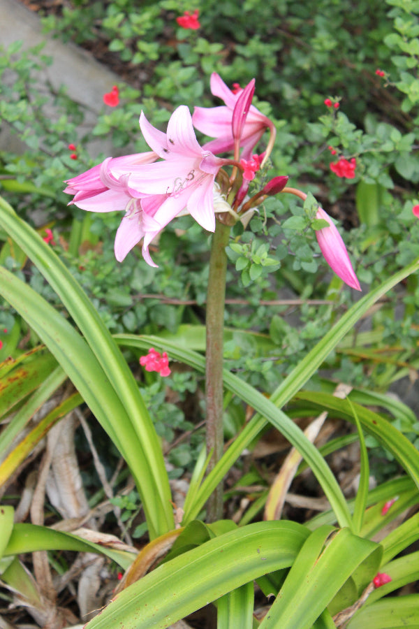 Tall stems of large pink flowers. Up to 8 per stem. Easy to grow, in a sunny well-drained position.