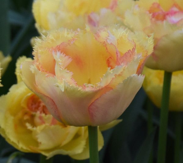 Beautiful double tulip that starts life as mainly yellow gaining apricot, orange and red hues as it ages. Named for the Belgian music group.