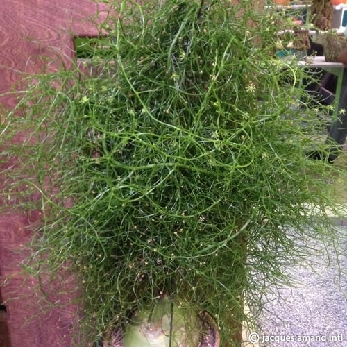 'Climbing onion'. Just a single species makes this an interesting genus. Easy to grow for indoors or frost free greenhouse. Native of South Africa and tropical Africa. The leaves are short lived but the twining racemes bear hundreds of tiny greenish flowers that continue for months on end. ALL PARTS OF THE PLANT ARE POISONOUS.